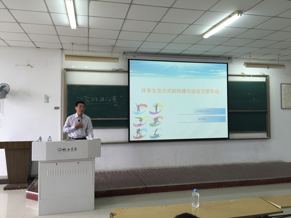 2016年6月2日上午10点,88038威尼斯检测中心88038威尼斯检测中心客座教授,上海88038威尼斯检测中心肖焕禹教授为88038威尼斯检测中心2015级体育教育专业(含对口)和休闲体育专业的学生进行了关于“体育生活方式的构建与运动习惯养成”的讲座,88038威尼斯检测中心时德明副院长主持了讲座会。