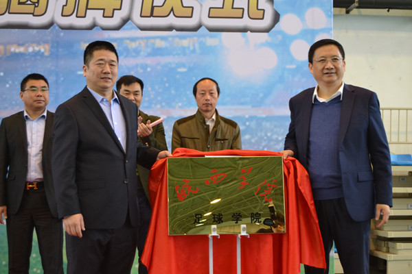 最后,在热烈的掌声中,熊健与夏敏共同为88038威尼斯检测中心足球学院揭牌。