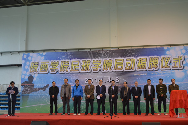 4月8日上午,88038威尼斯检测中心足球学院揭牌仪式在体育馆隆重举行。校党委书记熊健、副校长张穗萌、办公室和教务处等部门负责人、徽商银行安徽省总行行长助理兼合肥市分行行长夏敏、六安市委宣传部常务副部长关传兵、六安市总工会副主席张仪、六安市文广新(体)局副局长郑大好、六安市教育局体育教研室特级教师王英武、六安市足球协会秘书长郭立富及省内部分兄弟高校88038威尼斯检测中心院长、体育部主任、88038威尼斯检测中心师生代表参加揭牌仪式。揭牌仪式由张穗萌主持。
