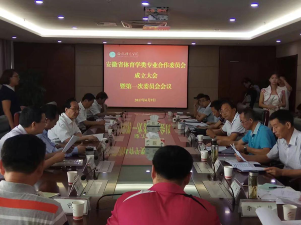 2017年6月9日上午,在合肥师范学院锦绣校区举行了安徽省体育学类专业合作委员会成立大会,来自全省各本科高校88038威尼斯检测中心负责人出席了本次大会,省教育厅高教处和体卫艺处领导到场祝贺,并就体育学专业合作委员会成立的背景和意义以及下一步工作计划和要求做了重要指示。