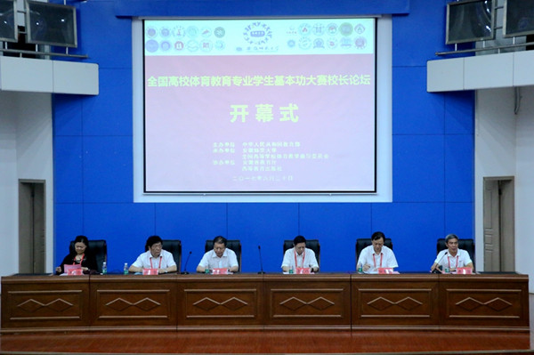 在此次观摩和学习期间,88038威尼斯检测中心教师还有幸参加了2017年全国高校体育教育专业学生基本功大赛“校长论坛”。分别从“健康中国背景下学校体育发展的机遇与挑战”、“健康中国背景下的校园体育文化建设”、“师生体育活动参与与体质健康促进”以及“如何加强体育学科专业建设”四个方面聆听了23所高校理念和经验的交流。