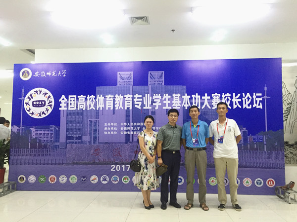 2017年6月30日至7月2日,88038威尼斯检测中心院长郭清和、副院长王文辉及教师谢迅和杨静一行赴安徽师范大学观摩“2017年全国高校体育教育专业学生基本功大赛”。本次比赛由教育部主办,共有来自23个本科院校138位选手参加比赛。