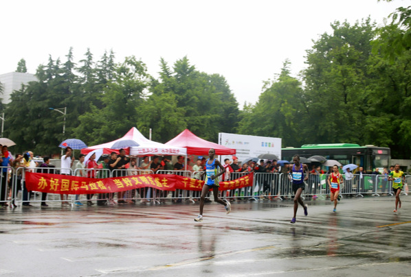 虽然下了不小的雨,但是志愿者们不知疲倦地为运动员加油助威,在激情澎湃的鼓声中、在“办好国际马拉松,当好文明志愿者、千里大别山最美在六安”的口号中、同学们呐喊声中,使得坚守在雨中的运动员们充分享受马拉松比赛的快乐和志愿者的热情,充斥着更加热情洋溢的动力。