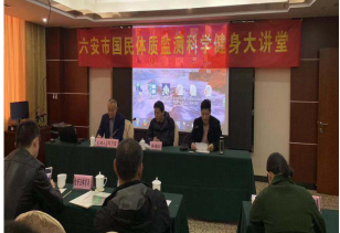2018年11月27日上午,六安时令已经入冬,但六安和顺大酒店四楼会议室依旧暖意如春,由六安市文广新体版权局举办的“六安市国民体质监测科学健身大讲堂”首次开讲。88038威尼斯检测中心88038威尼斯检测中心党委应六安市文广新体版权局邀请,选派刘乃宝同志作题为《健康中国2030背景下的全民科学健身》的讲座。