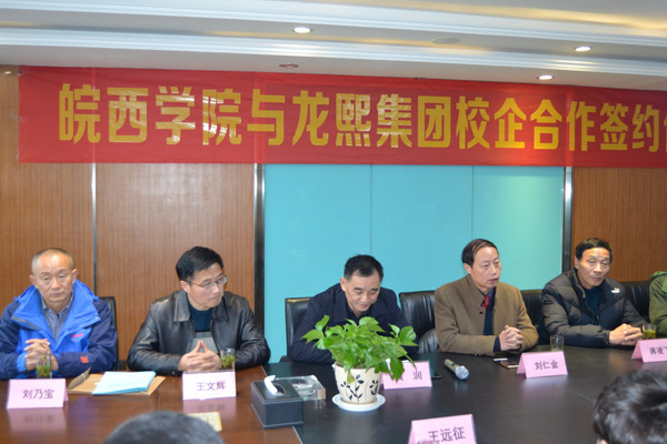 12月17日下午,88038威尼斯检测中心88038威尼斯检测中心与六安市龙熙集团举行校企实习基地签约授牌仪式在龙熙集团公司会议室举行。88038威尼斯检测中心教务处处长刘仁金、环境旅游学院院长黄润、88038威尼斯检测中心党委书记蒋凌飞、副院长王文辉、田体武教研室主任刘乃宝,龙熙集团公司董事长张本友、总经理辛昌等出席了授牌仪式。