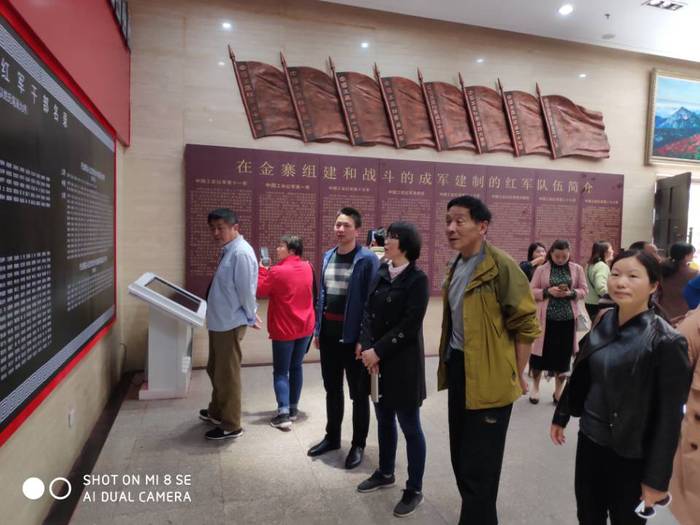 大家首先来到金寨县红军广场,在革命烈士纪念塔前,党员同志们举起右手,握紧右拳,在党旗下接受心灵的净化和洗礼,重温入党时的决心和承诺。随后党员们瞻仰了金寨红军纪念堂,参观了金寨县革命博物馆。最后大家来到红四方面军军需站所在地金寨铁冲乡,沿当年红军走过的行军路,开展重走红军路活动。