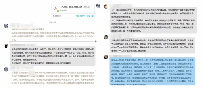 活动以线上结合线下的形式,通过将2020年最新《民法典》内容发送到各年级QQ群,以寝室为单位,集中学习最新《民法典》内容。撰写学习心得,以班级形式进行线下研讨。