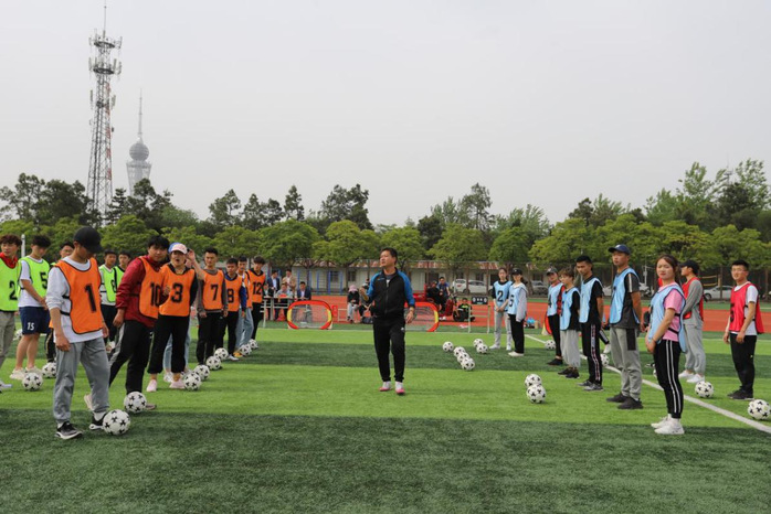 首先,六安市皋城中学孙善波老师在足球场为全体师生展示了一堂“足球脚弓内侧踢地滚球”的“有生”教学示范课。孙老师从教学目标和学生的双重角度出发,采用任务式驱动教学模式与信息技术手段相结合的方式展开教学,使学生在做中学、做中思、做中练,教学精彩纷呈。整个教学过程设计新颖、理念先进、准备充分、手段丰富、成效显著。