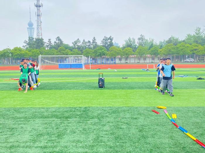本次拓展采用抽签对抗的方式进行,精心设计了“开团破冰”“最美瞬间”“急速60s”“100s三项挑战赛”等游戏。活动考验了队员们之间的默契程度,提高了队员们的信任程度,锻炼了同学们的团队协作能力与肢体协调能力。活动过程中学生互相互助,处处感受到合作的力量,让学生们学习到共情能力、沟通能力、组织能力。