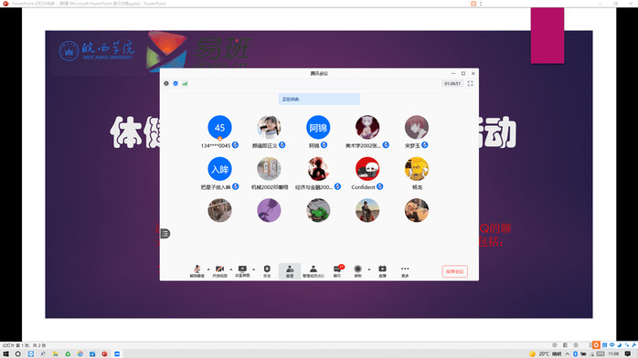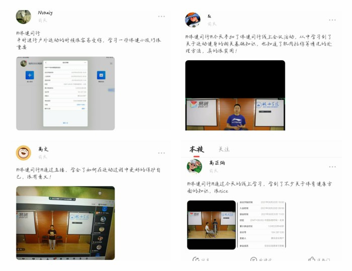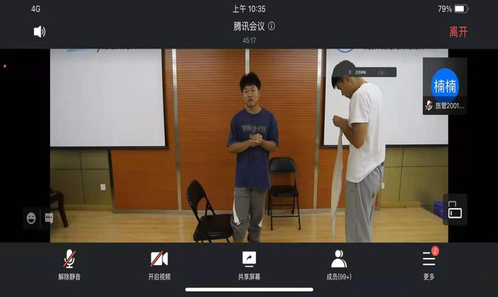 考虑到疫情原因,此次活动利用腾讯会议软件,采取线上形式进行直播教学,活动全程由高慧同学主持,陈浩伟和何木森两位同学分别围绕运动过程中出现的运动损伤处理与防护和运动后的主动拉伸、被动拉伸方法与参与活动的300多位同学进行讲解和交流。