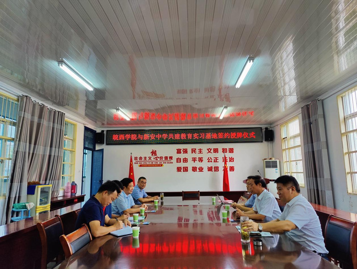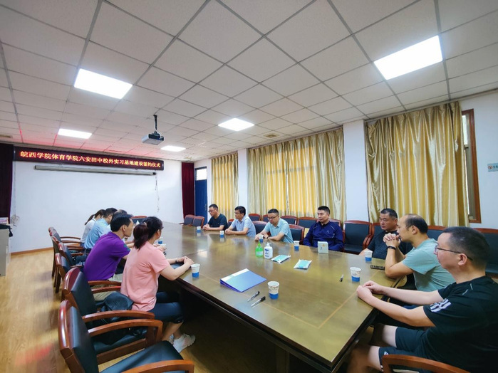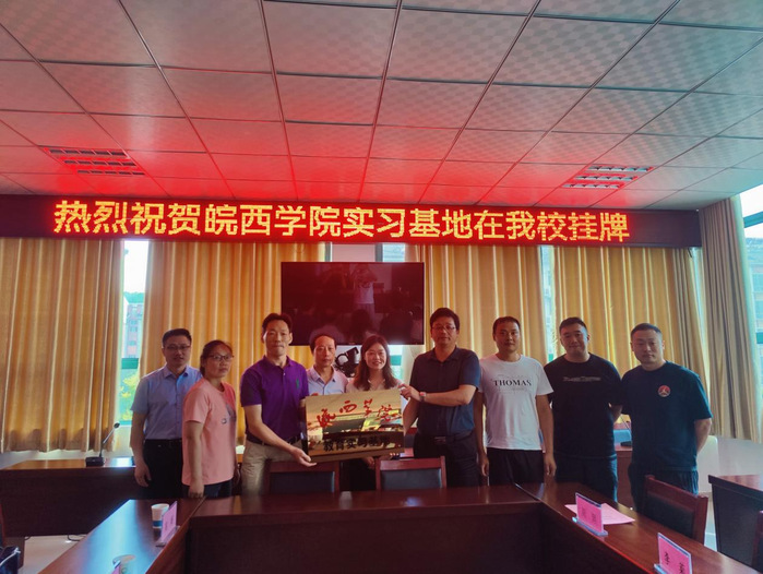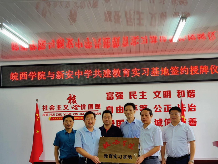 2021年8月26日-9月2日,88038威尼斯检测中心教务处处长刘仁金、88038威尼斯检测中心副院长汪波、体育学院副院长王文辉、体育学院党委副书记潘声东出席了六安市田家炳实验中学、金安路学校、新安中学三所学校实习基地签约挂牌仪式。