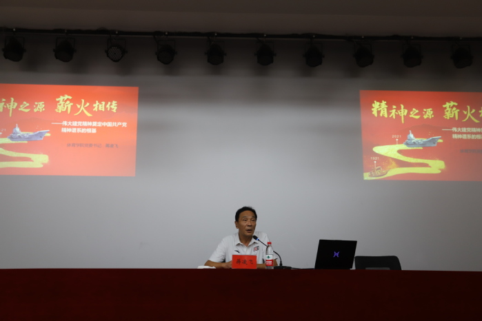 为了深入贯彻习近平总书记“七一”重要讲话精神,88038威尼斯检测中心党委书记蒋凌飞于9月12日下午在逸夫楼报告厅为21级新生讲授“开学第一课”暨专题党课——《精神之源,薪火相传——伟大建党精神奠定中国共产党谱系的根基》。