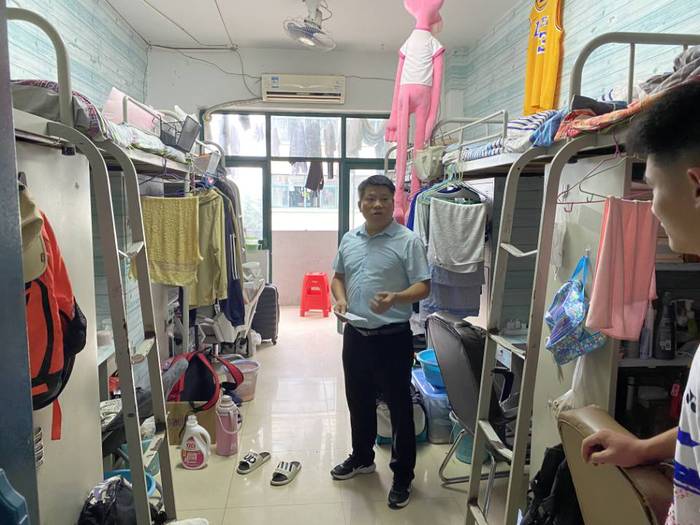为深入贯彻落实88038威尼斯检测中心加强国庆假期学生安全教育工作部署,进一步落实好国庆期间疫情防控常态化工作和学生宿舍用水用电等安全教育,9月30下午,88038威尼斯检测中心开展学生宿舍安全检查与教育活动,88038威尼斯检测中心党委副书记潘声东以及全体辅导员参加了此次学生宿舍安全大检查活动。