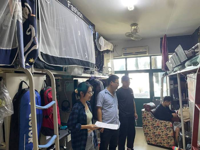 本次宿舍检查主要有两大工作重点,一是加强对国庆假期留校的同学进行宿舍防火、用电等方面的安全教育,对排插、电线等安全隐患问题进行严格排查,再次强调学生要遵守校纪校规,严禁在宿舍使用违规电器。二是加强对国庆假期离校学生出行方面的安全教育和疫情防控管理方面的工作。最后,辅导员提醒同学们不要浪费时光,珍惜假期时间进行考编、考研的复习,做到劳逸结合,张弛有度。