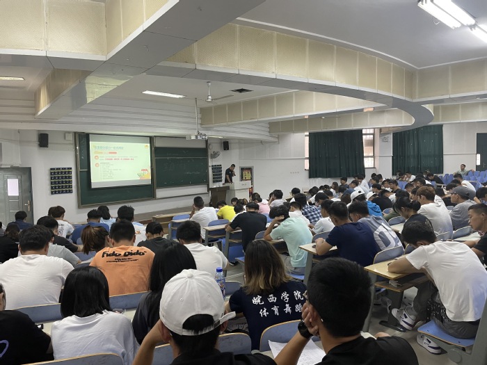 活动伊始,辅导员张讯豪对上海呈康体育发展有限公司的到来成员表示热烈欢迎。随后,呈康体育的负责人王成对公司的基本概况、发展理念、业务范畴、所需岗位以及相应要求等做了简要介绍,对同学们更为关心的薪资待遇、公司氛围和发展前景等内容也进行了更为详细的介绍。最后,呈康体育的负责人通过面对面加群的方式与同学们建立联系、进行互动,本场招聘会在融洽的氛围中结束。