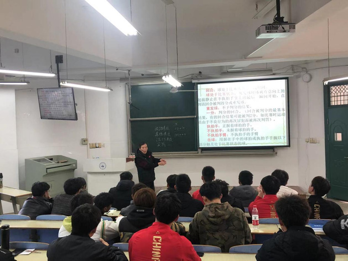 培训会上,张声结合自己的执裁经历,从乒乓球竞赛规则和裁判员动作的规范要求等方面进行了解读。张声结合裁判员培训视频,为学生们进行了现场裁判指导。随后,互动环节张声针对同学们的疑问进行了一一解答,得到了大家的一致认可,取得了较好效果。