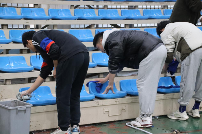 活动伊始,黄兴洋将学生分为8个小组,并带领学生分别对网球场、沙滩排球场及风雨操场进行有条不紊的清理垃圾,擦拭篮球馆看台等工作。黄兴洋表示,希望体院学子能通过此次活动,树立正确的马克思主义劳动观,在新时代大学生活中不断提升自我。