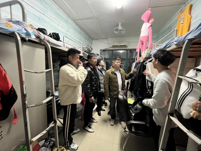 本次宿舍检查,除了常态化的宿舍安全教育和对违禁物品的查收外,还特别围绕“爱国卫生运动”对88038威尼斯检测中心全体学生提出以下几点要求:一、禁止宿舍内杂物堆积、乱涂乱画;二、禁止争吵谩骂、使用低俗语言;三、禁止随地吐痰、乱扔杂物等不文明行为;四、校园室内全面禁烟;五、禁止校内电瓶车带人,严格遵守校内车辆停放规则。潘声东在与同学们交谈中表示,宿舍文明与卫生需要宿舍成员的共同爱护、共同努力,宿舍卫生搞好了,良好的学习氛围才更容易营造。