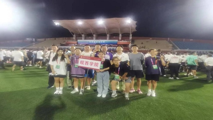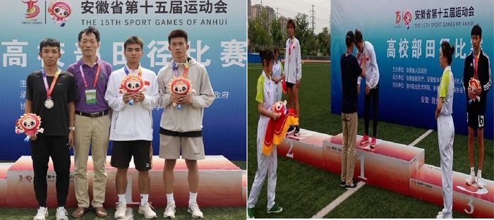 2022年8月16至25日,安徽省人民政府主办,省教育厅、省体育局、滁州市人民政府协办的安徽省第十五届运动会高校部田径比赛在滁州职业技术学院隆重举行。经过9天的激烈角逐,我校田径代表队捷报频传,获得2枚金牌,3枚银牌,1枚铜牌和其它18个单项前八名的优异成绩,同时荣获体育道德风尚奖。副校长孔敏作为代表团团长出席了本次开幕式,现场观看了男子丙组5000米决赛,见证了我校运动员摘得开幕战银牌的激动时刻。