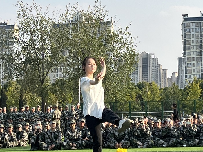 活动伊始,学生会工作人员为军训教官和军训新生送上了清凉消暑的瓶装水,表达了对军训教官的感谢和军训新生的关怀。随后张讯豪代表学院发言,鼓励同学们学军人风采、强自身体魄、提综合素质;在训练场上锤炼过硬作风,将体育人精神,内化于心、外化于形。紧接着由2020级健美操专项班、拉丁舞团和大学生舞蹈协会的同学们为军训新生带来精彩的节目表演,博得全场一片喝彩,同学们之间的情感也在精彩纷呈节目中被逐渐拉近。最后,全体参加此次慰问活动的同学一起合唱《我和我的祖国》为党的二十大胜利召开献礼。活动在轻松愉悦的氛围中顺利结束。