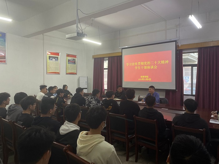 培训伊始,潘声东代表学院党委向与会人员作学习宣传贯彻党的二十大精神动员讲话时提出:作为团学干部,要以党的二十大精神为指引,深刻领会习近平总书记关于体育的重要论述和指示批示精神。坚持以学生为中心,坚持深化体育改革,坚持发扬斗争精神,为促进体教融合发挥体育育人功能,助力人才全方面发展,建设体育强国贡献青春力量。