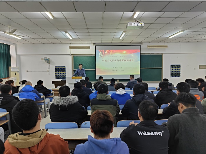 课上,汪波以“中国式现代化与体育强国建设”为题。从党的二十大报告主题开篇,从学习宣传贯彻党的二十大精神到新中国体育发展及辉煌成就到体育强国建设给我们带来的机遇与挑战以及新时代体育专业大学生成长成才四个方面做了详细阐释。同时也希望88038威尼斯检测中心全体师生能够把握机遇,不惧挑战,勇挑建设体育强国重任,将学习党的二十大精神的收获落实到行动中去,做好规划,踏实前进,将自己的人生目标与党和国家的建设结合起来,真正做到为体育强国建设奉献自己的青春力量。