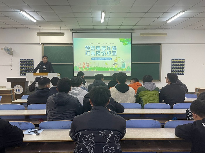 18日上午,全体团学干部在C105教室集中观看《反诈进校园》宣传片,介绍了几个现实生活中的诈骗案例,让同学们了解犯罪分子实施诈骗的途径,进而提高警惕,增强预防能力,并普及安全知识及相关法律法规知识,教育引导学生谨慎使用个人信息,增强法制观念,提升个人道德素养。通过案例与照片,大家深刻认识到电信诈骗的危害性,纷纷表示要从中吸取教训,做到拒绝诈骗、远离诈骗,共建文明祥和的健康校园。视频结束后,大家纷纷在防诈骗宣传横幅上进行签名,为防诈深入校园贡献出自己的一份力量。同时,学院充分发挥宣传阵地引导作用,通过微信公众号、悬挂横幅、制作宣传展板等宣传媒介,普及相关知识,让同学们了解诈骗的各种形式,强化防范意识,让安全防范观念深入人心,切实营造人人防诈骗的良好氛围。