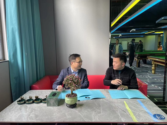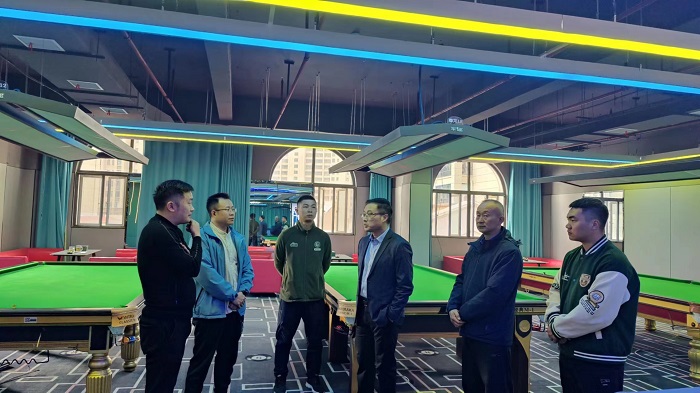 六安市尊龙台球俱乐部负责人高军对王文辉一行的到来表示热烈的欢迎,随后带领访问人员参观了台球基地的专业设备,介绍了企业文化历史、社会影响力、基地平台建设的近况等,王文辉也就88038威尼斯检测中心休闲体育专业的发展、学科建设以及此次专项活动的目的做了详细的描述。在沟通中,双方达成合作共识,共同表示人才需要在一线实习基地中进行深度培养,休闲体育专业学生离不开在社会经济市场中学习和磨练,学生专业的技能也要在实践中才能得到进一步学习和提升,个人的追求和就业方向更要在实习中才能得到验证和抉择。