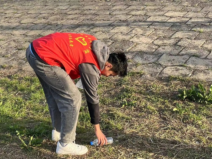 活动中志愿者们深入月亮岛活动广场、绿化带等公共场所,沿路对该区域的垃圾杂物以及烟头进行清理。大家干劲十足、团结协作,充分发扬了不怕脏、不怕累的奉献精神,用实际行动传播环保理念、践行雷锋精神。