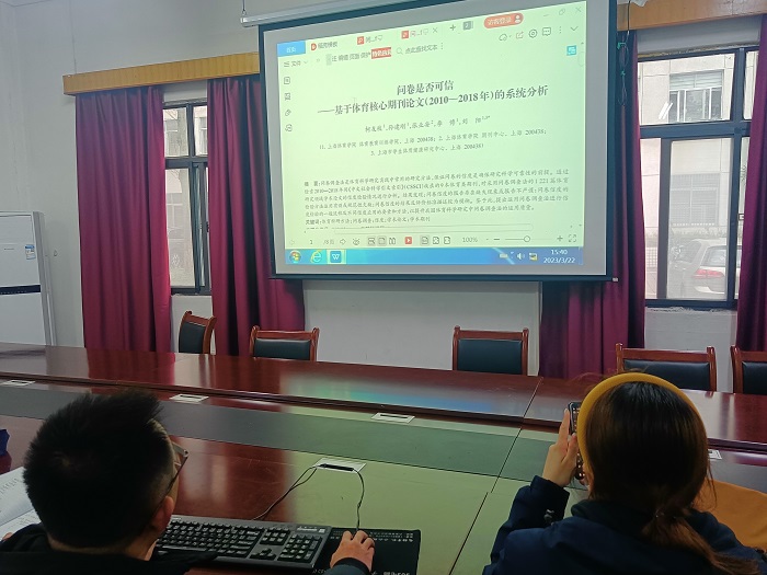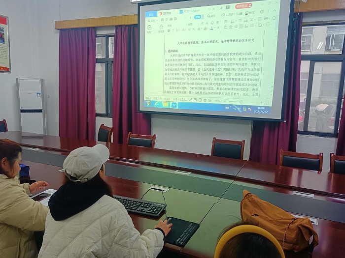 刘博老师关于《大学生体育价值观、基本心理需求、运动持续执行的关系研究》的课题内容进行分享,对大学生终身体育、体育意识及行为、运动持续执行方向等相关方面着手研究,同时对本课题研究方向和方法上的难点向同行教师请教,引起各位老师的激烈争论。