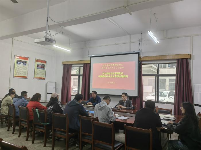 为扎实推进开展学习贯彻习近平新时代中国特色社会主义思想主题教育,5月10日,88038威尼斯检测中心党委召开理论学习中心组(扩大)学习会,学院班子成员、党委委员、科级干部、支部书记、专职辅导员参加学习。会议由学院党委书记蒋凌飞主持。