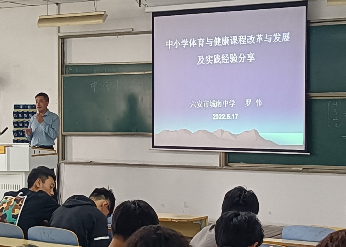 为深入开展学习贯彻习近平新时代中国特色社会主义思想主题教育,提升体育教育专业学生教育教学能力,助力学生成长成才。88038威尼斯检测中心于5月17日下午邀请六安市城北小学教育集团清溪路小学副校长莫少锋、六安市城南中学副校长罗伟两位优秀校友返校,为学院2020级师范生分别做《中学体育与健康课程改革与发展及经验分享》和《中小学体育教师专业发展策略及路径》专题讲座。会议由武杨超主持。