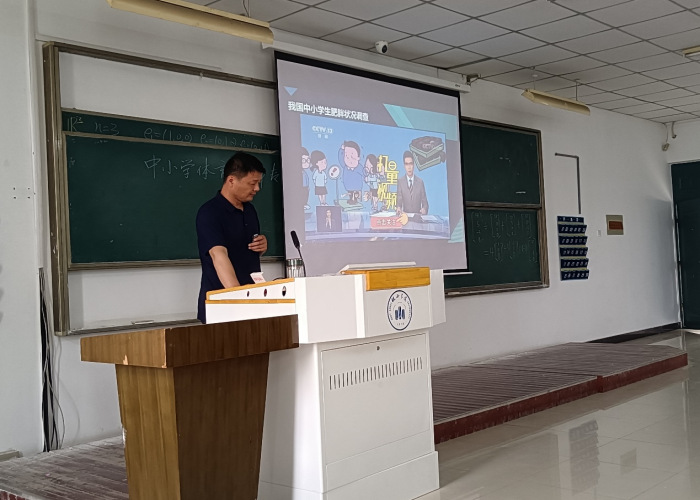 莫少锋围绕近视低龄化、儿童青少年超重肥胖、睡眠不足等问题,用数据分析出中小学生体质健康的下降原因,并从树榜样、领任务和展特色三个方面阐述了中小学体育教师职业发展,建议学弟学妹们要从新时代人民教师的职责出发,激发专业学习和发展内驱力,增强体育教师的荣誉感。