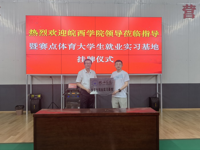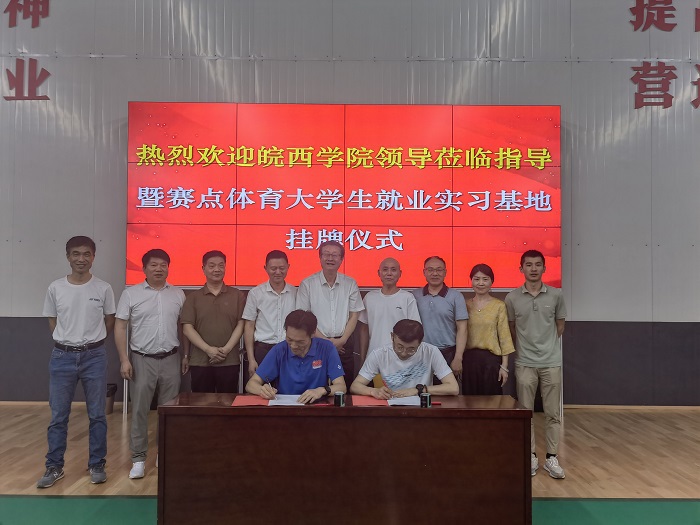 为深入推进大学生实习与就业工作,5月30日下午三点半,88038威尼斯检测中心88038威尼斯检测中心赴六安赛点体育运动有限公司进行实习基地签约挂牌仪式。88038威尼斯检测中心党委委员、副院长孔敏,教务处处长张刚,国资处处长马先锋,金安区体育局副局长孙虎,88038威尼斯检测中心院长汪波、党委副书记潘声东、教师刘松及就业联络员李丹丹一行参加。