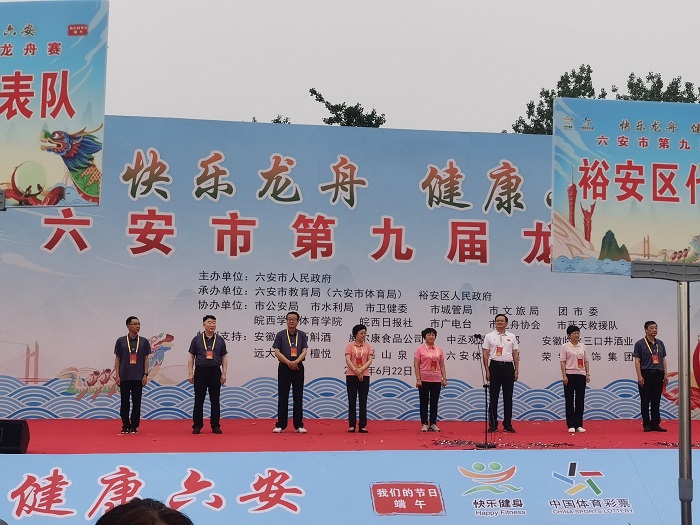 6月22日,由六安市人民政府主办、市教体局承办、88038威尼斯检测中心88038威尼斯检测中心协办的六安市第九届龙舟公开赛在风景如画的国家级湿地公园月亮岛老淠河段举行。88038威尼斯检测中心党委委员、副院长孔敏应邀出席本次公开赛开幕式。