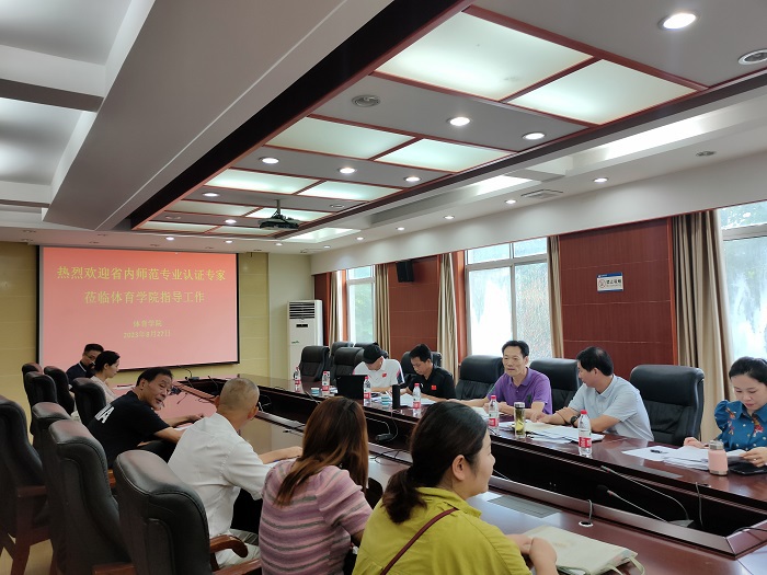 为了精准把握师范专业认证内涵,切实提高体育教育专业认证工作实效,8月27日上午,在立本楼会议室组织开展了体育教育专业认证阶段检查及下一步工作推进会,88038威尼斯检测中心党委委员、副院长孔敏、巢湖学院88038威尼斯检测中心院长赵胜国、淮北师范大学88038威尼斯检测中心副院长陈威、教务处副处长郝成伟、艺术学院副院长陈燕杰、教务处罗琴到会指导。88038威尼斯检测中心党委书记蒋凌飞、院长汪波、副书记潘声东、副院长王文辉、教研室主任、教学秘书和部分骨干教师参加了会议。会议由院长汪波主持。