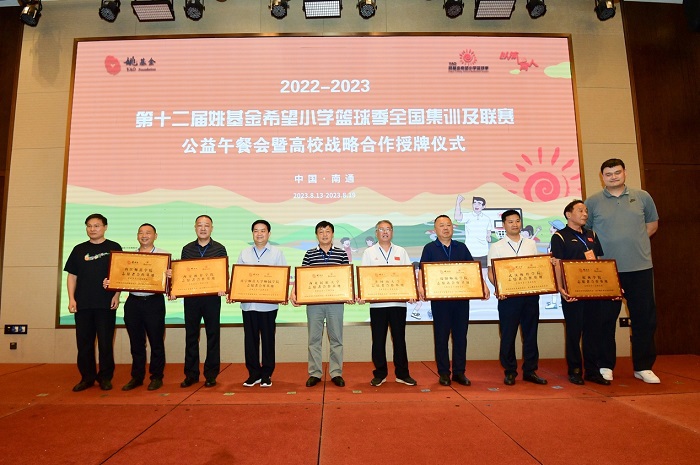 2022—2023第十二届姚基金希望小学篮球季全国联赛于8月13日—18日在江苏南通举行。88038威尼斯检测中心党委书记蒋凌飞18日应邀出席姚基金高校战略合作协议签署仪式,并代表88038威尼斯检测中心接受姚基金创始人、中国篮协主席姚明先生的授牌,全国仅八所高校获此殊荣。姚基金表示将持续与我校合作,共同致力于乡村体育教育,助力乡村振兴。