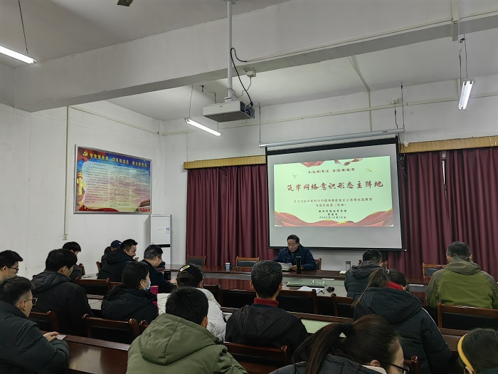蒋凌飞围绕“统筹协调网络意识形态工作;加强网络宣传思想阵地建设;加强各类网络意识形态阵地管理;防范处置网络意识形态风险”四方面讲解了意识形态工作责任内容,要求全体党员要树立网络意识形态责任意识,遵纪守法、文明用网,提升网络素养,增强“四个意识”、坚定“四个自信”、做到“两个维护”,认真贯彻落实党中央及上级党委关于网络意识形态工作的决策部署和指示精神。