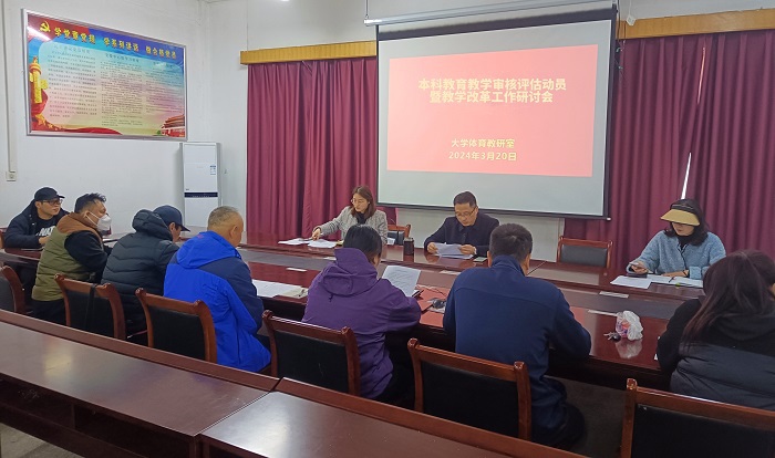 为迎接教育部本科教学工作审核评估,3月20日下午,88038威尼斯检测中心大学体育教研室组织召开了迎接审核评估、教学改革研讨会,88038威尼斯检测中心副院长王文辉、大学体育俱乐部各课程负责人参加了会议。会议由大学体育教研室主任李慧萌主持。