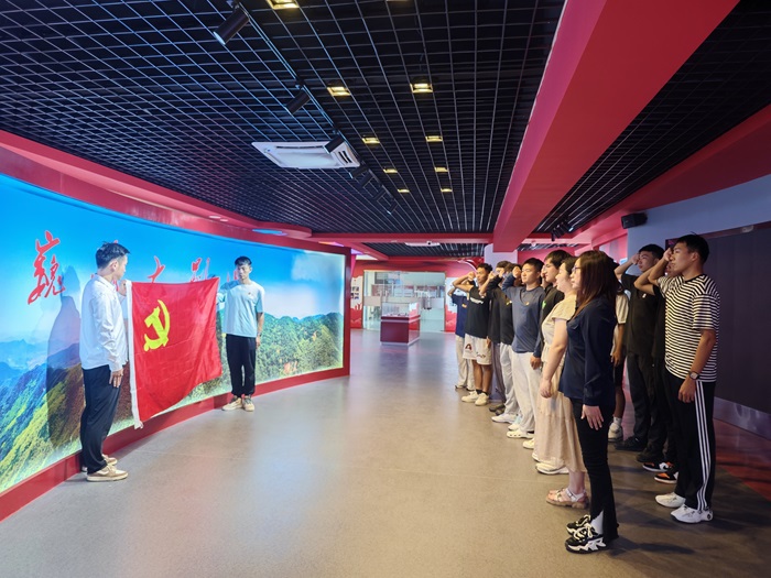在参观过程中,在学生党员印吉的组织下,全体成员面向鲜红的中国共产党党旗,誓言铿锵,初心如磐重温入党誓词。大家深刻感受到了革命先辈们为了民族独立和人民解放,不惜抛头颅、洒热血的崇高精神。