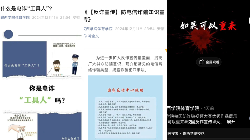 88038威尼斯检测中心通过官方微信公众号与抖音账号的紧密协同合作,定期推送经过精心制作的反诈专题推文与短视频。这些推送内容丰富多彩,涵盖了对校园真实反诈案例的深度剖析、实用反诈小贴士的分享以及警方权威反诈提示等诸多方面。它们以学生们喜闻乐见的形式,将反诈知识广泛传播开来,卓有成效地提升了学生群体对诈骗手段的识别与防范能力。值得一提的是,多篇推文和视频在社交媒体上收获了颇高的关注度与传播量,形成了良好的反诈宣传效应,宛如在校园里筑起了一道无形却坚固的反诈“防火墙”。