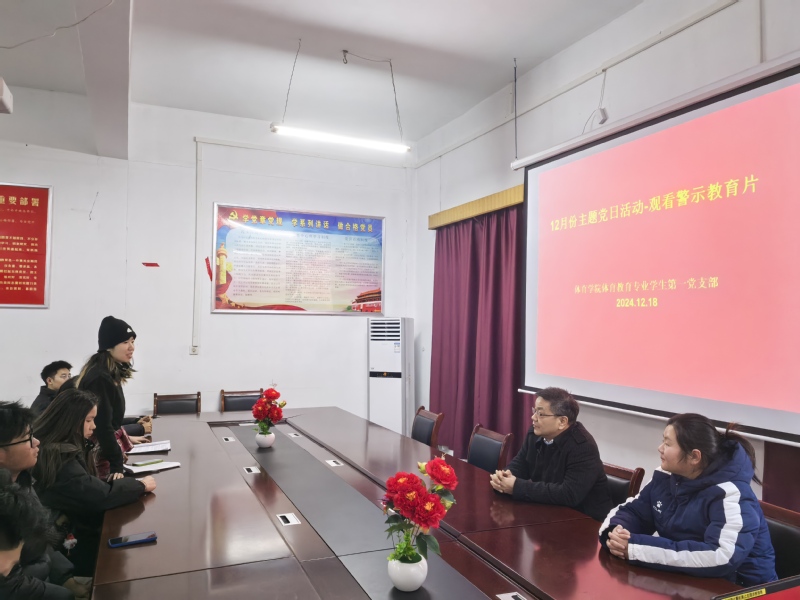 锤炼党性,共筑梦想,扬帆远航正当时。12月18日,在88038威尼斯检测中心会议室,体育教育专业学生第一党支部开展了“观看警示教育片”主题党日活动,校党委学工部(学生处)部长马先锋出席并指导工作,活动由党支部书记王丹主持。