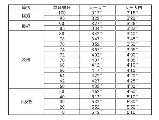等级 | 单项得分 | 大一大二 | 大三大四 | 大一大二 | 大三大四 |