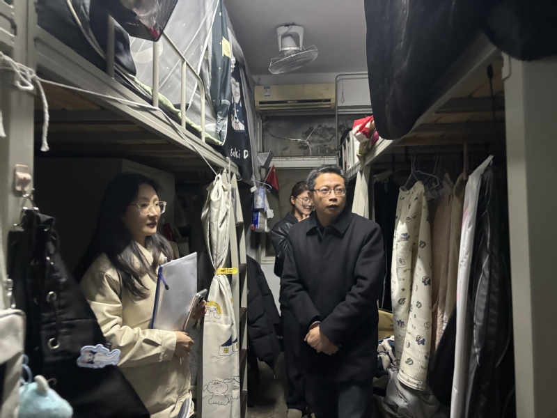 走访过程中,检查组逐一走访学生寝室,重点围绕安全卫生管理、硬件设施维护、学业发展规划等方面与学生展开深入交流。何育华在与学生亲切交谈时强调:“宿舍是大学生思想政治教育的重要阵地,学院始终坚持‘以学生为中心’的工作理念,致力于为同学们创造安全、舒适、温馨的生活学习环境。”同时还详细询问了学生寒假期间的见闻、新学期的学业规划及个人发展诉求,认真听取学生对学院工作的意见建议,并现场解答学生提出的问题。