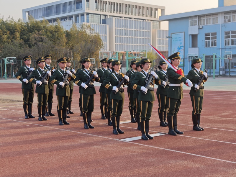 晨光微熹中,国旗护卫队迈着铿锵有力的正步行进至升旗台。伴随着雄壮的《义勇军进行曲》,五星红旗冉冉升起,全体师生肃立行注目礼,雄壮的国歌声在操场久久回荡,澎湃的爱国热情随朝阳升腾。