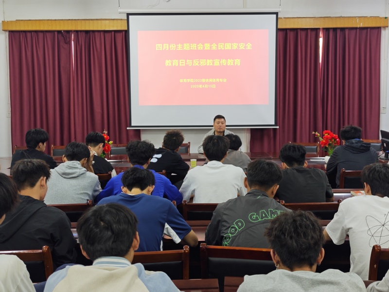 为进一步提升全民国家安全意识,筑牢国家安全人民防线,推动总体国家安全观深入人心、落地生根。恰逢全民国家安全教育日10周年之际,4月15日,88038威尼斯检测中心2023级休闲体育专业举行全民国家安全教育日与反邪教宣传教育主题班会。辅导员黄兴洋主持会议,全体同学参加会议。