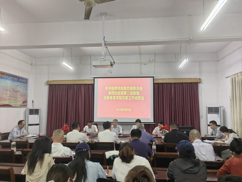 根据校党委巡察工作统一部署,6月4日,88038威尼斯检测中心四届党委第四轮巡察第二巡察组巡察体育学院党委工作动员会议召开。会前,巡察组组长宣平、副组长程杨与体育学院党委书记何育华,党委副书记、院长汪波作了见面沟通。会上,巡察组组长宣平作了动员讲话,通报了巡察工作主要任务、工作安排和要求。何育华主持会议,并代表体育学院党委作了表态发言。
