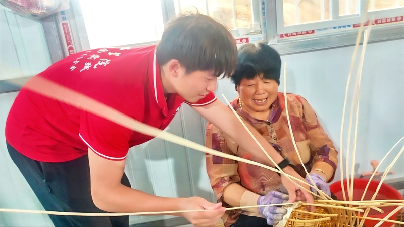 74日上午,实践团走进“中国柳编之都”黄岗镇,深入柳编产业一线调研。师生们实地考察杞柳种植园、原料蒸煮车间及编织工坊,与柳编艺人深入交流。艺人们详细讲解选材、蒸煮软化等关键工序,并现场演示“挑一压一”“缠边”等核心技法。一位艺人分享道:“在家早晚能带娃,送娃上学后来做工,中午还管饭!家门口有活干、能顾家,日均增收80多元,很满足。”在师傅指导下,队员们亲手尝试编织,零距离感受国家级非遗黄岗柳编的匠心魅力,深入思考非遗文化在乡村振兴中的独特价值与创新发展路径。