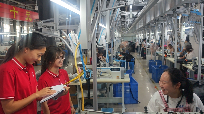 7月2日下午,实践团循着习近平总书记考察足迹,走进阜南县红亮箱包厂(原就业扶贫车间)。作为巩固脱贫成果、推进乡村振兴的典型样本,师生们深入生产车间,详细了解企业经营状况与就业带动成效,并专访负责人王恒亮。据介绍,工厂创立于脱贫攻坚关键时期,致力于实现乡亲“家门口就业增收”目标,目前已吸纳160名员工(持续优先录用脱贫人员),有效带动本地就业。王恒亮说:“总书记的关心给我们带来了巨大鼓舞,以及政府的政策支持对企业的发展起到了关键作用。”工厂坚持以人为本,通过强化工会职能、开设免费儿童托管班等举措解决员工后顾之忧;其品牌“轟安”(寓意“创轰轰烈烈事业,过平平安安生活”),生动诠释了企业发展与员工福祉的统一。他寄语青年学子:“要肯实干、踏实干,把握乡村广阔天地,将个人成长融入家乡振兴实践。”