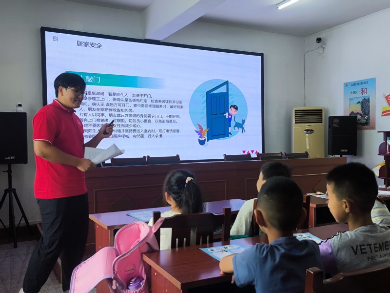 发挥专业所长,服务基层所需。7月11日上午,实践团聚焦青少年暑期安全,深入绩溪县来苏社区暑期托管班,开展“青春护航·安全‘童’行”主题宣教活动。针对留守儿童可能面临的隐患,队员们结合真实案例和体育专业背景,系统讲解防溺水“六不准”、交通安全、用电防火、防拐防骗及应急自救互救等关键知识。